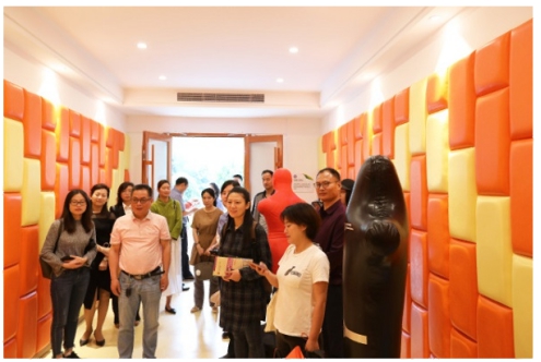 參會(huì)代表參觀并體驗(yàn)由湖北心拓建設(shè)的心理宣泄室