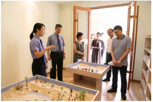 參會(huì)代表參觀由湖北心拓建設(shè)的心理沙盤(pán)治療室