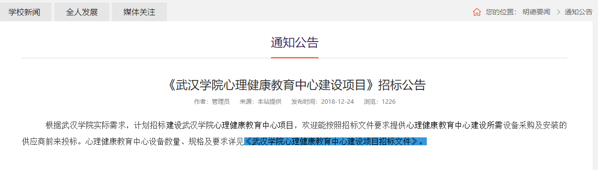 摘    要: 關(guān)于湖北心拓中標(biāo)武漢學(xué)院心理健康中心建設(shè)項目的公告。