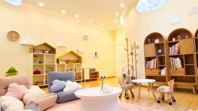 咨詢會談區(qū),柔軟的地毯上“躺著”六張云朵般舒適的懶人椅,供家庭咨詢使用。