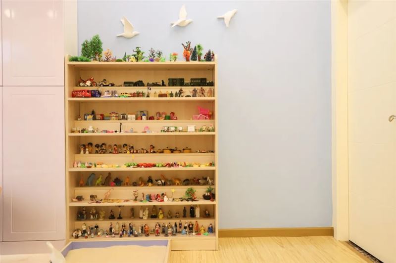 進門右手邊是小屋造型的玩具架,各種各樣的玩具讓孩子們感到輕松愉悅。